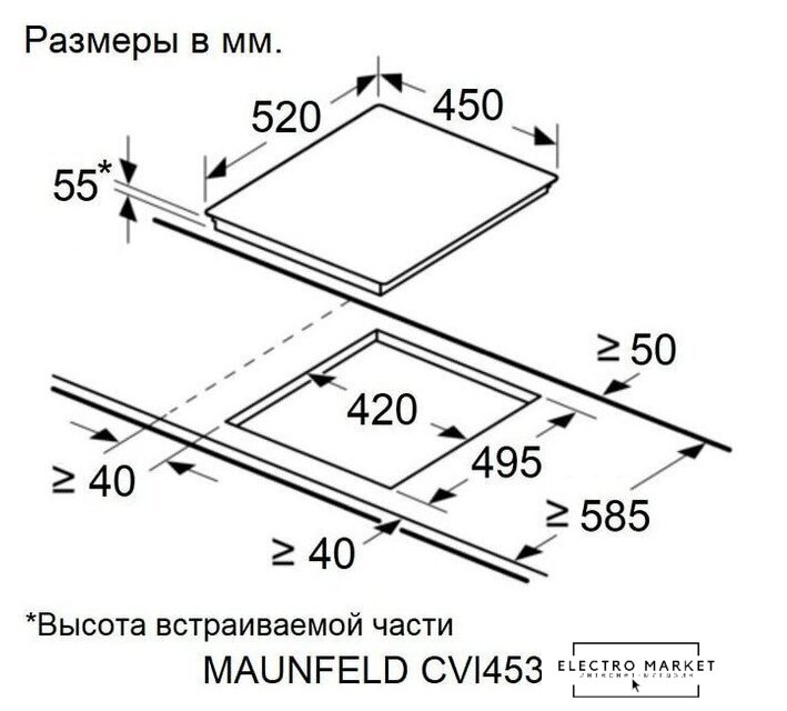 индукционная на 4 конфорки, cтеклокерамика, мощность: 6400 Вт, независимая установка, размеры (ШхГ): 59x52 см