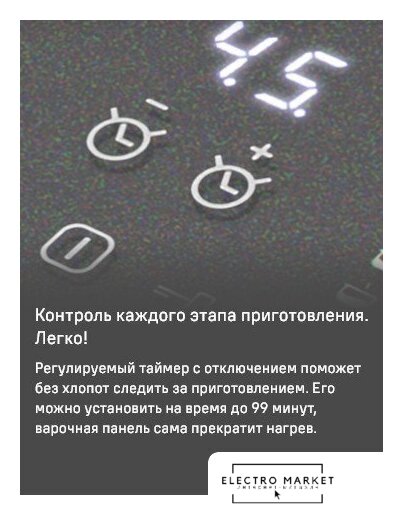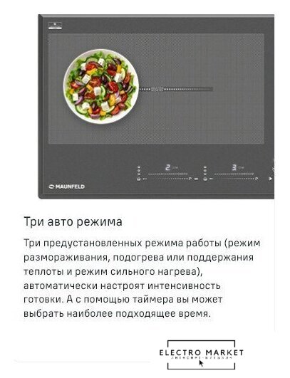 Подробная информация о конфорках | 2 х 1500 Вт (бустер 2000 Вт)2 х 2000 Вт (бустер 2800 Вт) |