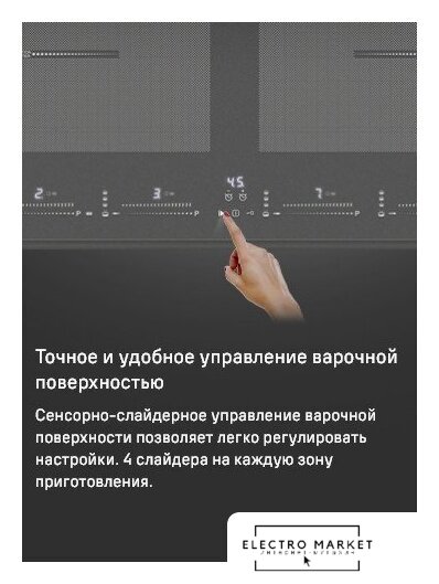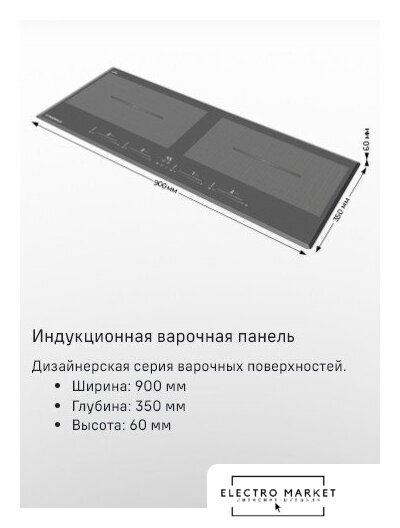 индукционная на 4 конфорки, cтеклокерамика, независимая установка, размеры (ШхГ): 59x51 см