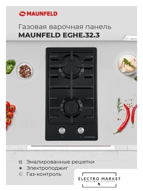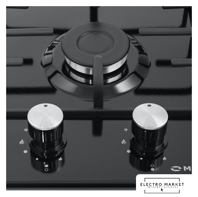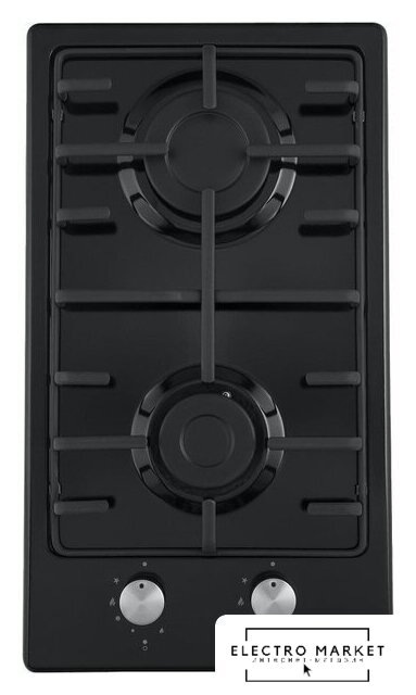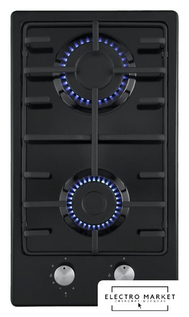 газовая на 2 конфорки, закаленное стекло, мощность: 4300 Вт, автоматический электроподжиг, газ-контроль, решетки: чугун, независимая установка