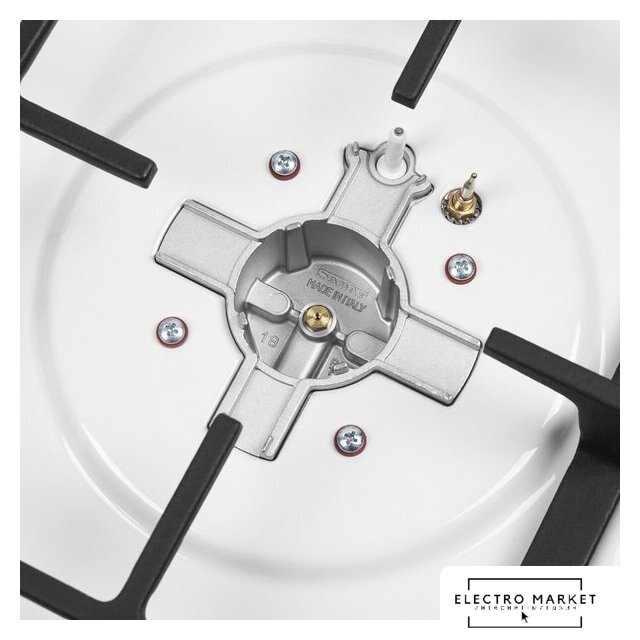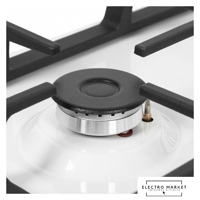 газовая на 4 конфорки, закаленное стекло, мощность: 7000 Вт, автоматический электроподжиг, газ-контроль, решетки: чугун, независимая установка
