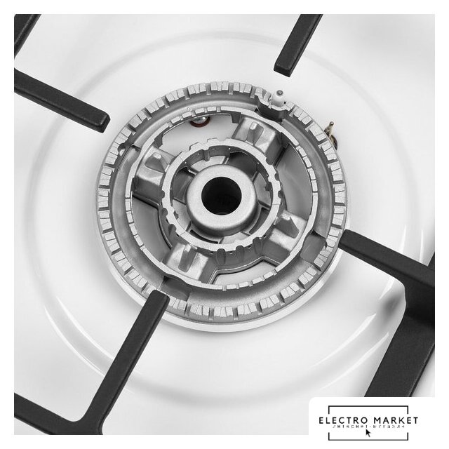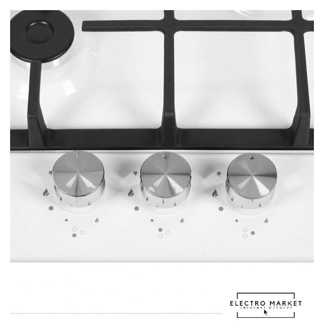 газовая на 4 конфорки, закаленное стекло, мощность: 7500 Вт, автоматический электроподжиг, газ-контроль, решетки: чугун