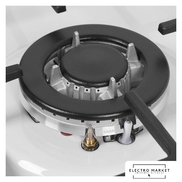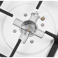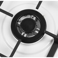 газовая на 4 конфорки, закаленное стекло, мощность: 8000 Вт, автоматический электроподжиг, газ-контроль, решетки: чугун, размеры (ШхГ): 58.4x51 см