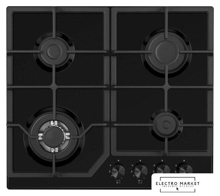 газовая на 4 конфорки, закаленное стекло, мощность: 8000 Вт, автоматический электроподжиг, газ-контроль, решетки: чугун, размеры (ШхГ): 61x52.5 см