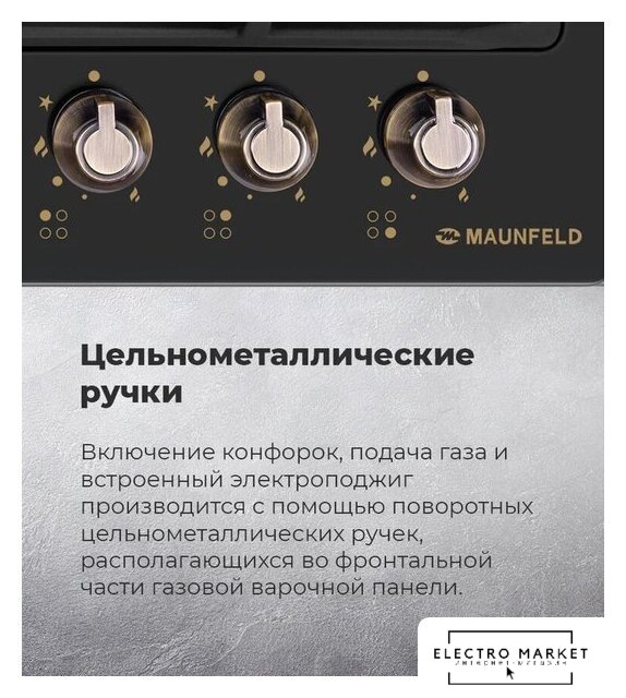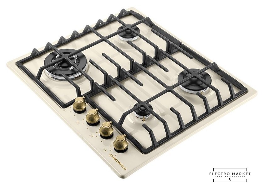 газовая на 4 конфорки, нержавеющая сталь, мощность: 9550 Вт, автоматический электроподжиг, газ-контроль, решетки: чугун
