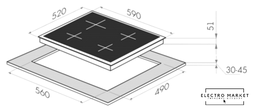 газовая на 4 конфорки, закаленное стекло, мощность: 7400 Вт, автоматический электроподжиг, газ-контроль, решетки: чугун, независимая установка, размеры (ШхГ): 59x52 см