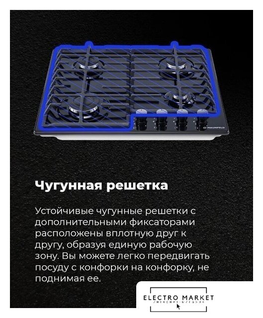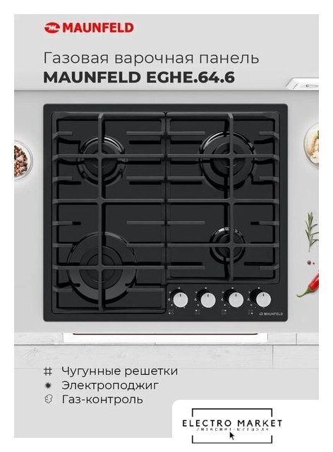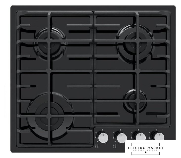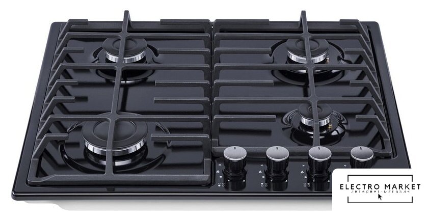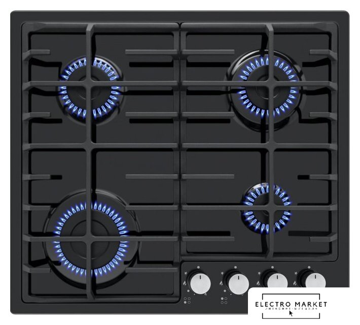 газовая на 4 конфорки, закаленное стекло, мощность: 7500 Вт, автоматический электроподжиг, газ-контроль, решетки: чугун, независимая установка, размеры (ШхГ): 60x51 см