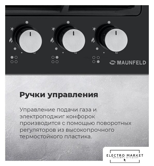 газовая на 3 конфорки, закаленное стекло, мощность: 6550 Вт, автоматический электроподжиг, газ-контроль, решетки: чугун, независимая установка, размеры (ШхГ): 45x51 см