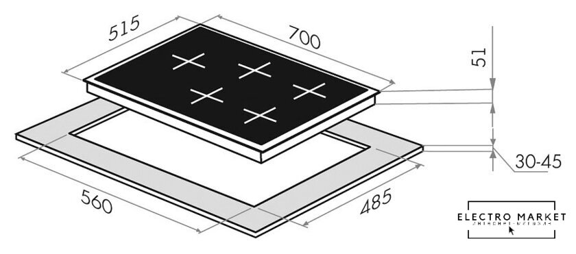 газовая на 4 конфорки, закаленное стекло, мощность: 8200 Вт, автоматический электроподжиг, газ-контроль, решетки: чугун, независимая установка, размеры (ШхГ): 58x52 см
