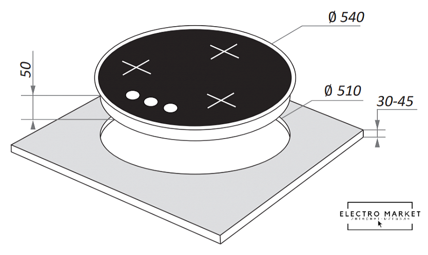 Подробная информация о конфорках | 3 конфорки мощностью: 3000, 1700, 1700 Вт |