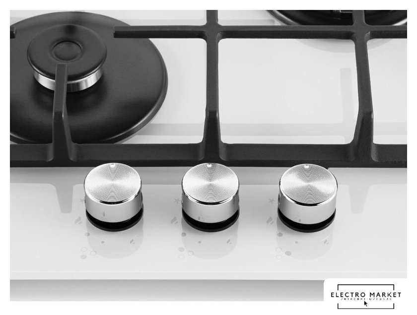 газовая на 3 конфорки, закаленное стекло, мощность: 6400 Вт, автоматический электроподжиг, газ-контроль, решетки: чугун, независимая установка, размеры (ШхГ): 54x54 см