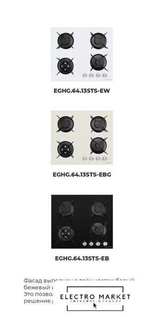 | Подробная информация о конфорках | 3 конфорки мощностью: 3000, 1700, 1000 Вт |