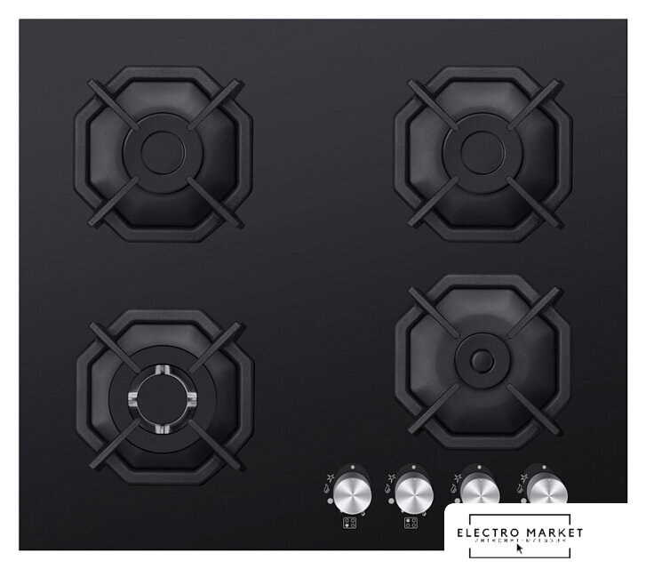 газовая на 4 конфорки, закаленное стекло, мощность: 7800 Вт, автоматический электроподжиг, газ-контроль, решетки: чугун, независимая установка, размеры (ШхГ): 59x52 см