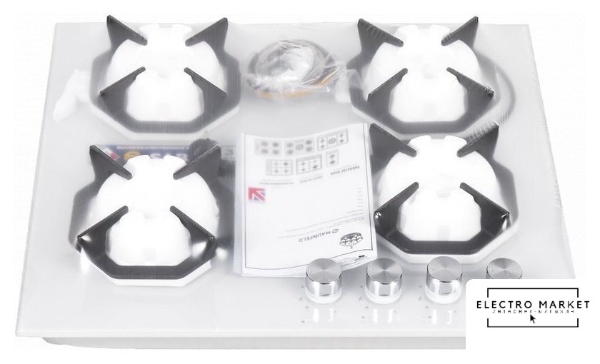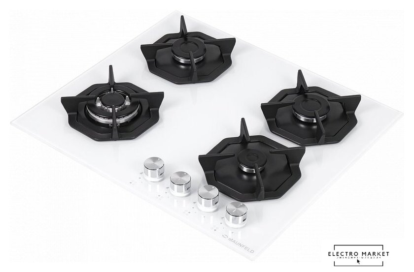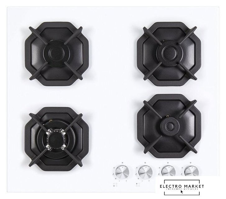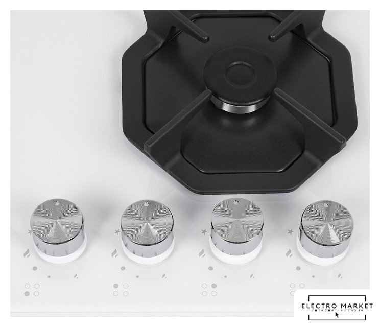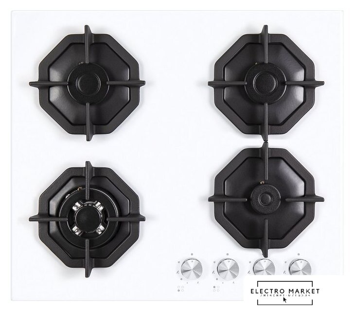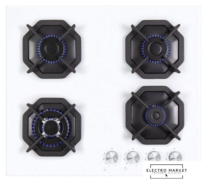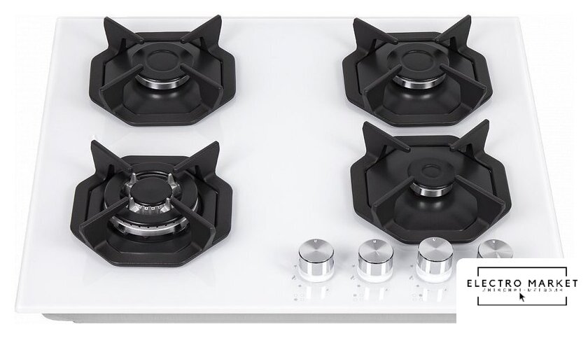 газовая на 4 конфорки, закаленное стекло, мощность: 7900 Вт, автоматический электроподжиг, газ-контроль, решетки: чугун, размеры (ШхГ): 60x51 см