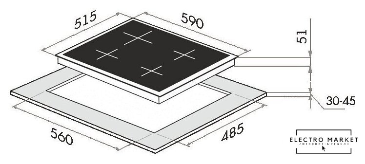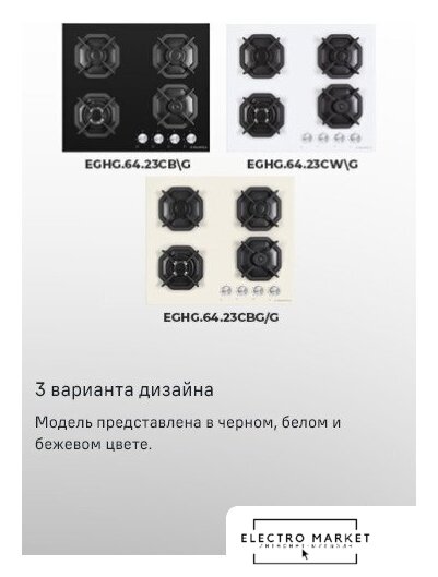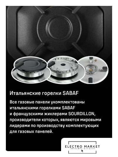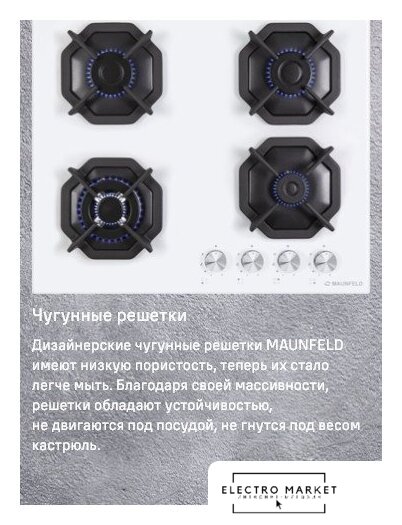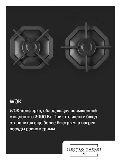 Подробная информация о конфорках | 4 конфорки мощностью: 3000, 1700, 1700, 1000 Вт |