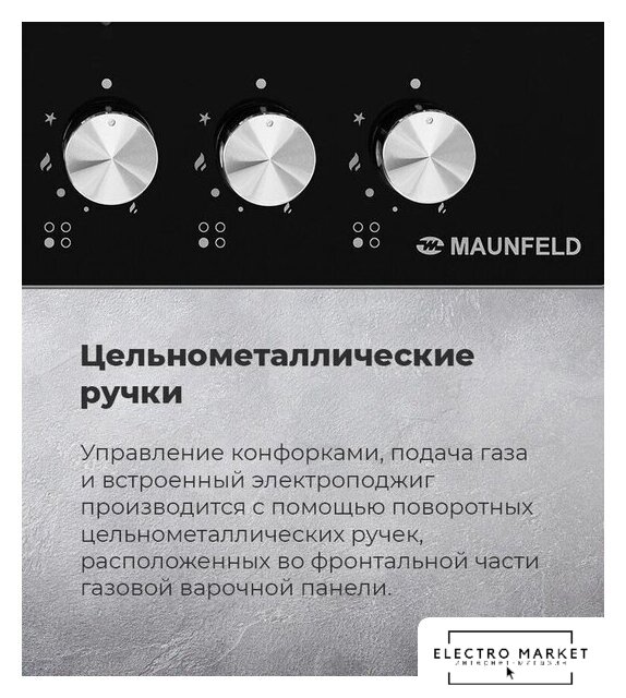 газовая на 3 конфорки, закаленное стекло, мощность: 6400 Вт, автоматический электроподжиг, газ-контроль, решетки: чугун, размеры (ШхГ): 44x51 см
