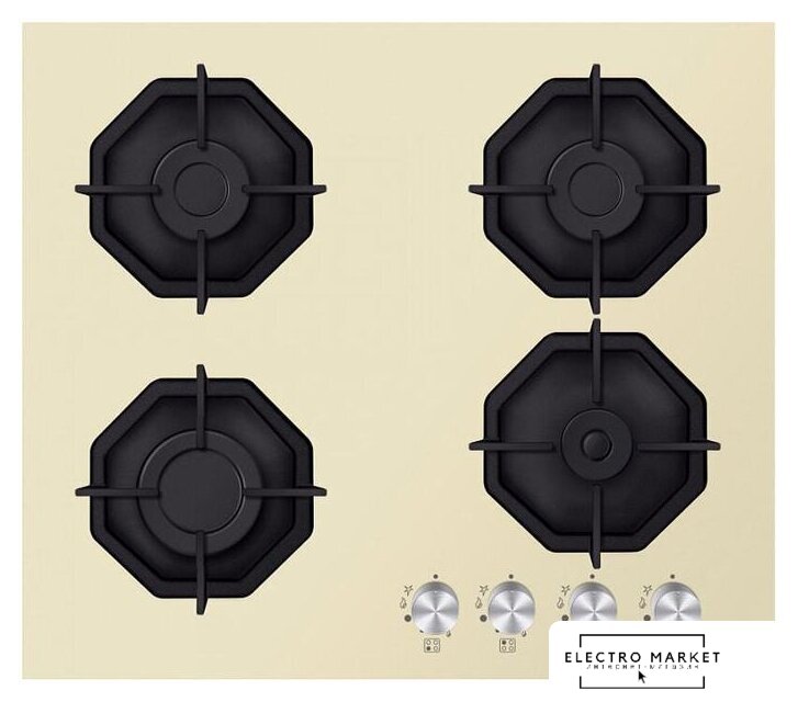 газовая на 4 конфорки, закаленное стекло, мощность: 7700 Вт, автоматический электроподжиг, газ-контроль, решетки: чугун, независимая установка, размеры (ШхГ): 60x52.5 см