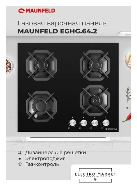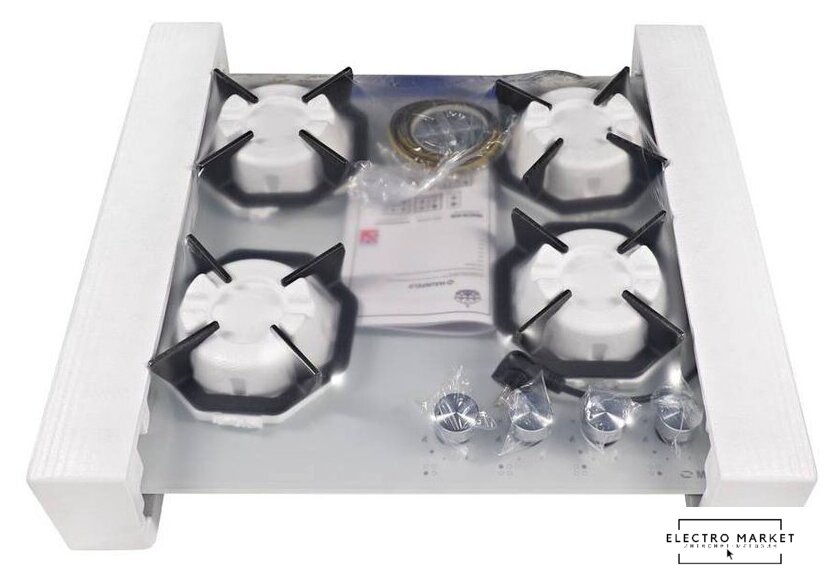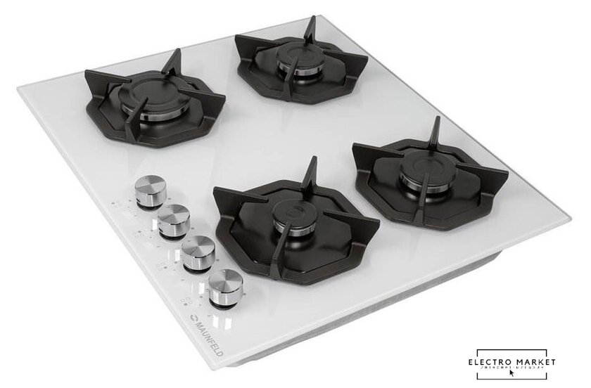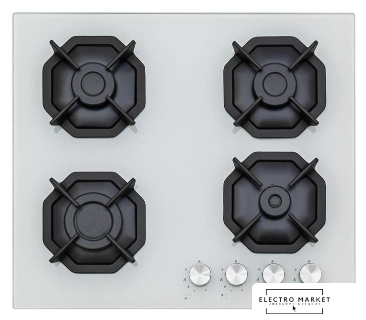газовая на 4 конфорки, закаленное стекло, мощность: 7500 Вт, газ-контроль, решетки: эмалированная сталь, независимая установка, размеры (ШхГ): 60x52 см