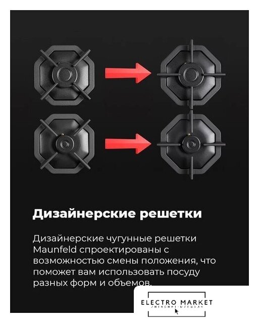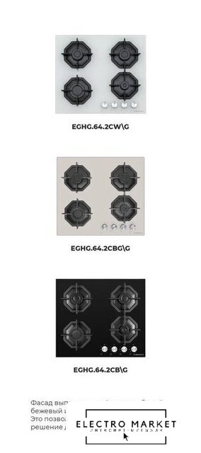 Подробная информация о конфорках | 4 конфорки мощностью: 2600, 1700, 1700, 1000 Вт |