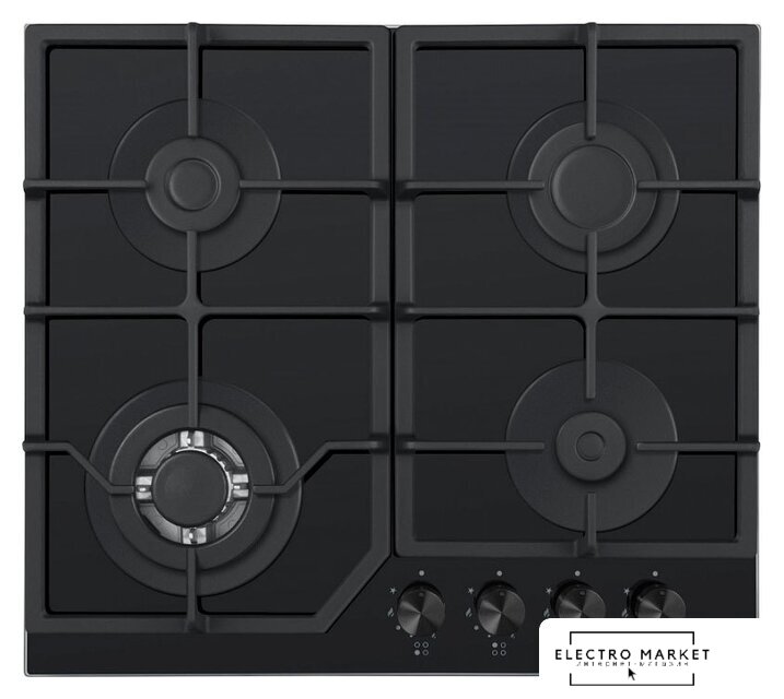 газовая на 4 конфорки, закаленное стекло, мощность: 8650 Вт, автоматический электроподжиг, газ-контроль, решетки: чугун