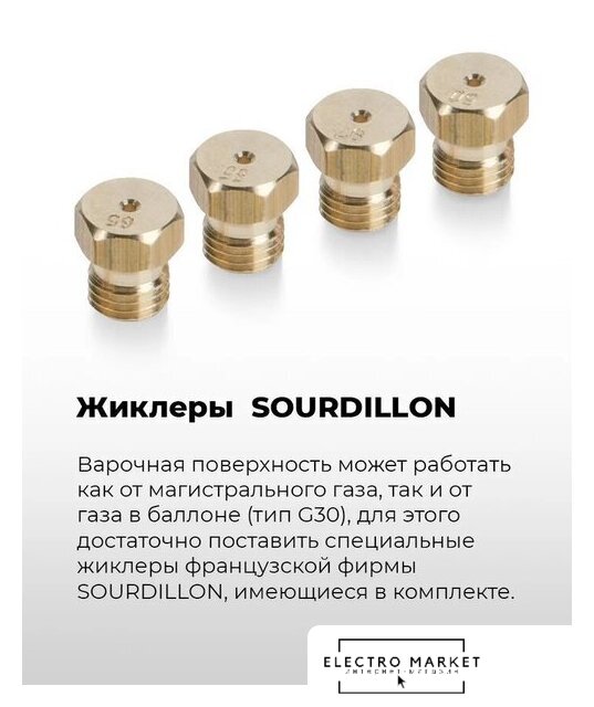 Подробная информация о конфорках | 1x3800, 1x2600, 1x1700, 1x1000 |