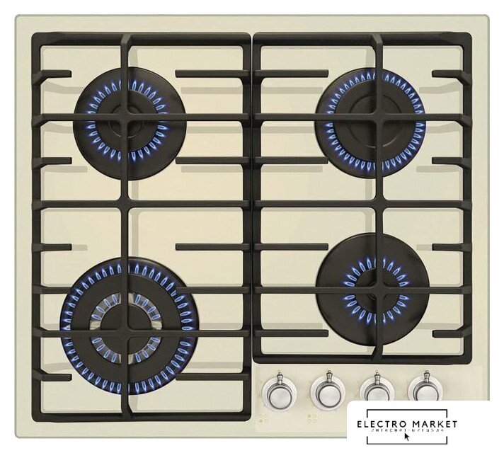 газовая на 4 конфорки, закаленное стекло, мощность: 7800 Вт, автоматический электроподжиг, газ-контроль, решетки: чугун, независимая установка, размеры (ШхГ): 58.2x50 см
