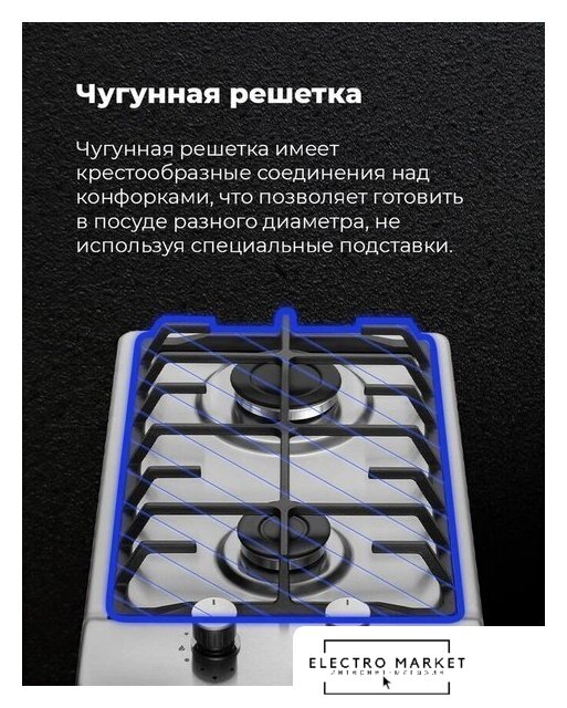 | Чугунные конфорки | нет |