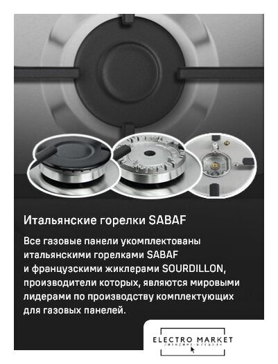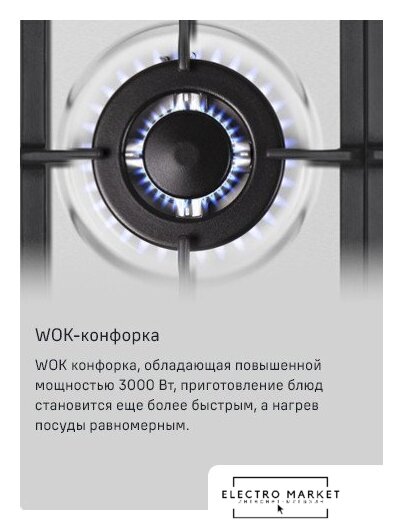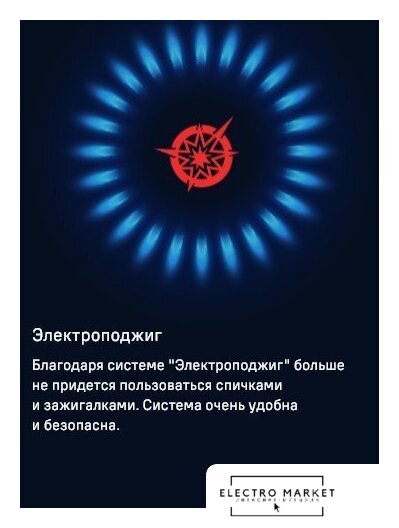 Подробная информация о конфорках | 5 конфорок мощностью: 3800, 2600, 1700, 1700, 1000 Вт. |