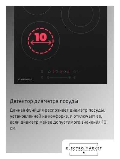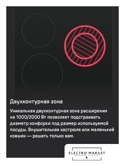 | Подробная информация о конфорках | 1800, 1200, 2000/1000 Вт |