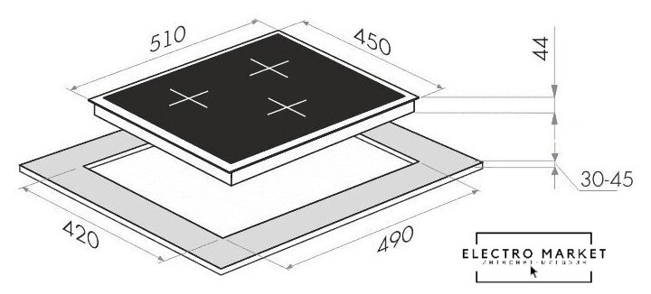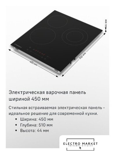 HiLight на 3 конфорки, cтеклокерамика, мощность: 4200 Вт, независимая установка, размеры (ШхГ): 45x52 см