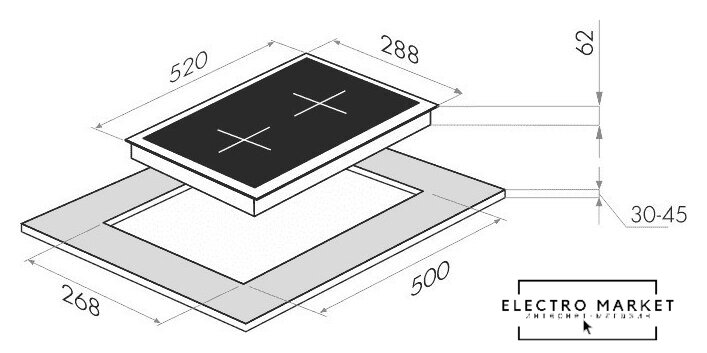 индукционная на 2 конфорки, cтеклокерамика, мощность: 3500 Вт, независимая установка, размеры (ШхГ): 28.8x52 см