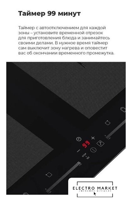 индукционная на 3 конфорки, cтеклокерамика, мощность: 6800 Вт, независимая установка, размеры (ШхГ): 60x52 см