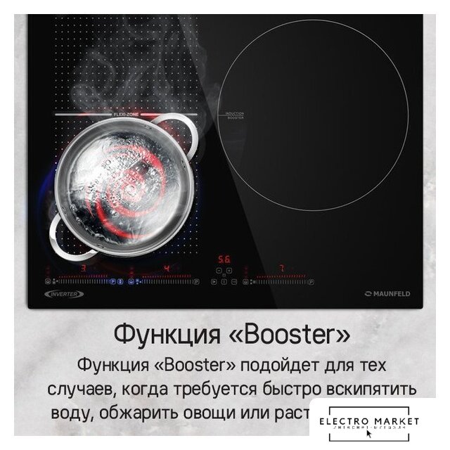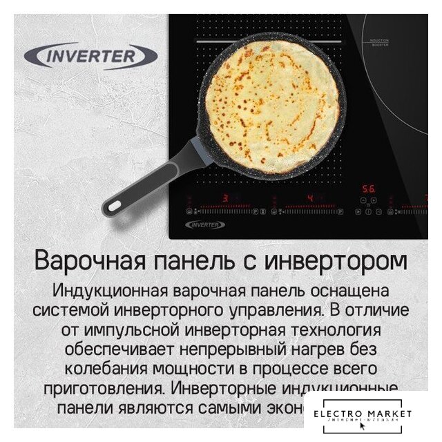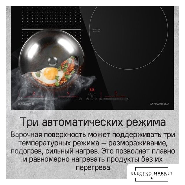 Подробная информация о конфорках | 1х2000Вт (бустер 2800Вт)1х1500Вт (бустер 2000Вт)1х2300Вт (бустер 3000Вт) |