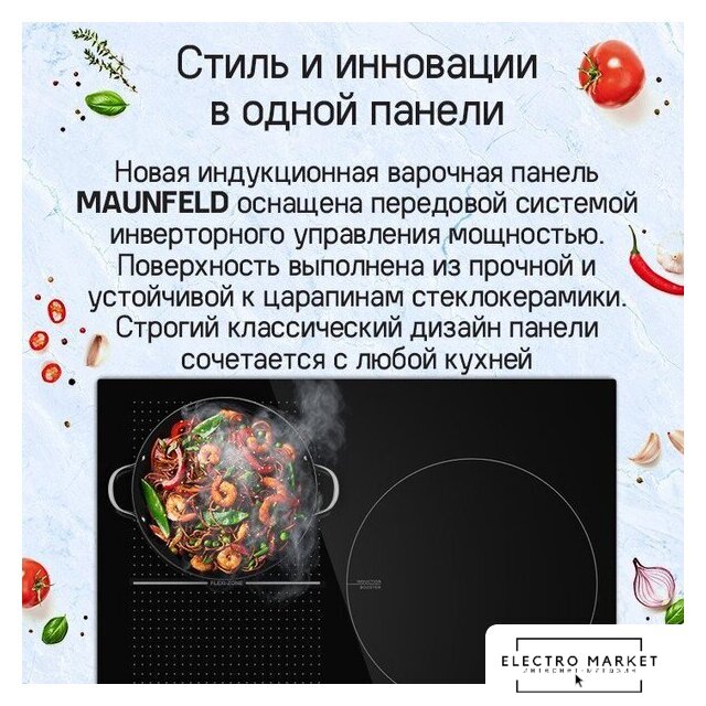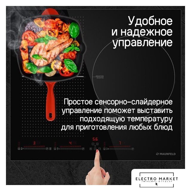 индукционная на 4 конфорки, cтеклокерамика, мощность: 6900 Вт, независимая установка, размеры (ШхГ): 59x52 см