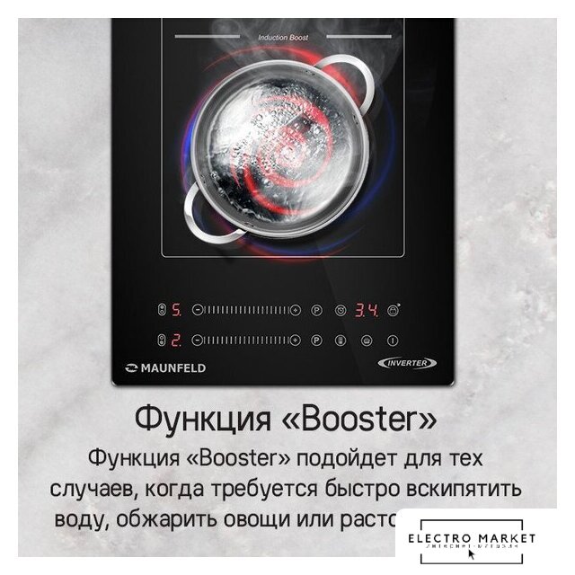 Подробная информация о конфорках | 1х1200 (бустер 1500), 1х2000 (бустер 2300) |