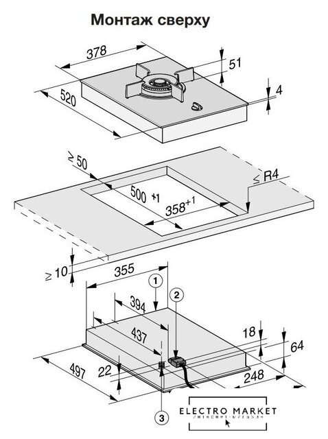 газовая на 4 конфорки, закаленное стекло, мощность: 8000 Вт, автоматический электроподжиг, газ-контроль, решетки: чугун, независимая установка, размеры (ШхГ): 59x52 см