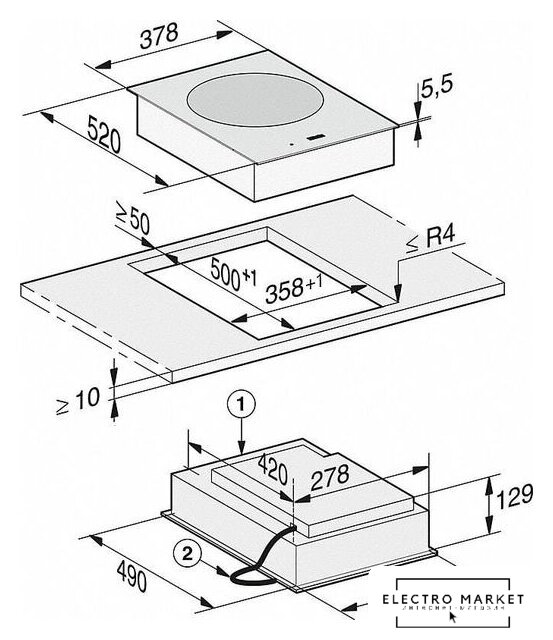 индукционная на 4 конфорки, cтеклокерамика, мощность: 7500 Вт, независимая установка, размеры (ШхГ): 80x52 см