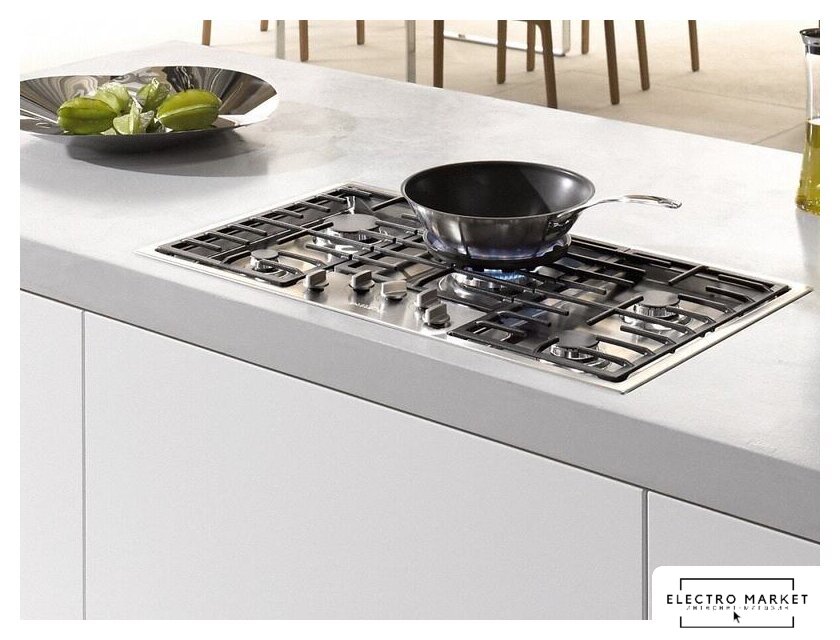 газовая на 5 конфорок, нержавеющая сталь, мощность: 11600 Вт, автоматический электроподжиг, газ-контроль, решетки: чугун, размеры (ШхГ): 88.8x50.8 см