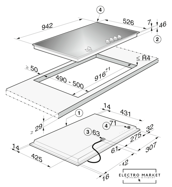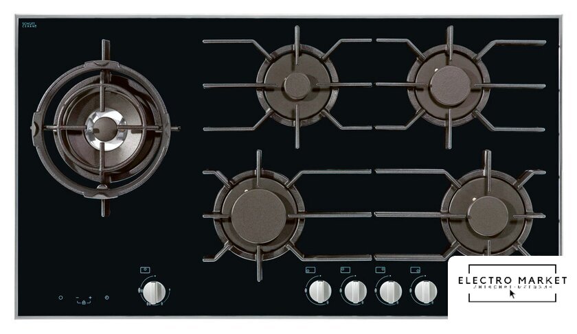 | Подробная информация о конфорках | - левая Wok 4700 Вт;- центральная передняя 2700 Вт;- центральная задняя 1000 Вт;- правая передняя 1700 Вт;- правая задняя 1700 Вт; |