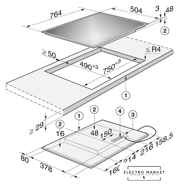 индукционная на 4 конфорки, cтеклокерамика, независимая установка, размеры (ШхГ): 83x51.5 см