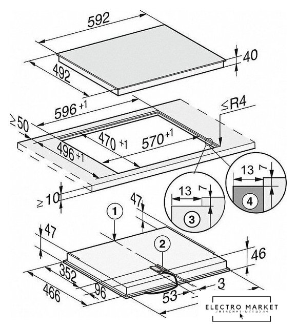 HiLight на 4 конфорки, cтеклокерамика, мощность: 6700 Вт, независимая установка, размеры (ШхГ): 59x52 см