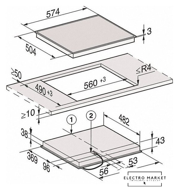 HiLight на 4 конфорки, cтеклокерамика, мощность: 6800 Вт, независимая установка, размеры (ШхГ): 59.6x51 см