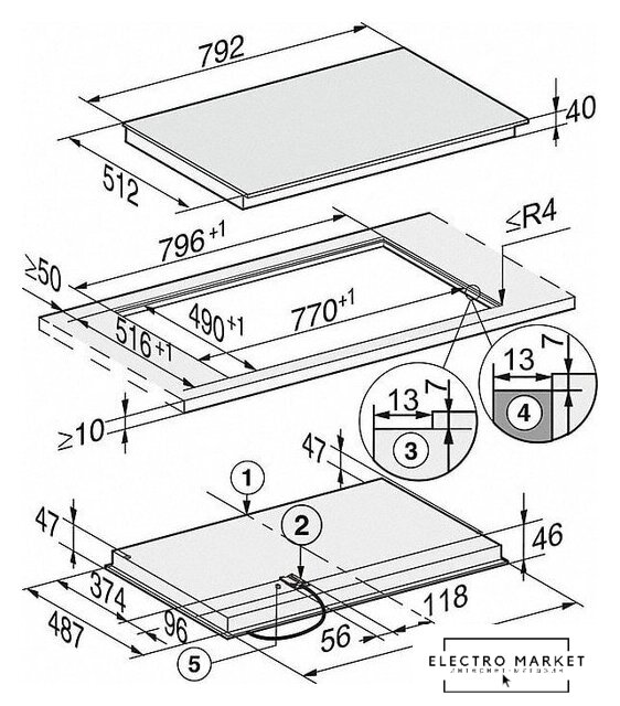HiLight на 4 конфорки, cтеклокерамика, мощность: 9200 Вт, автоматика закипания, независимая установка, размеры (ШхГ): 80.6x52.6 см