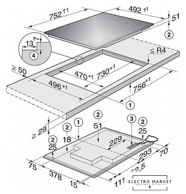 | Индукционные конфорки | 4 |