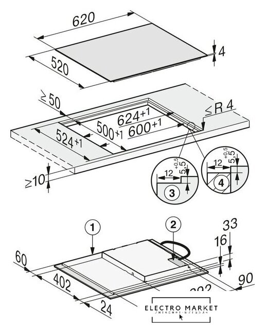 индукционная на 4 конфорки, cтеклокерамика, мощность: 7400 Вт, независимая установка, размеры (ШхГ): 60.2x52 см