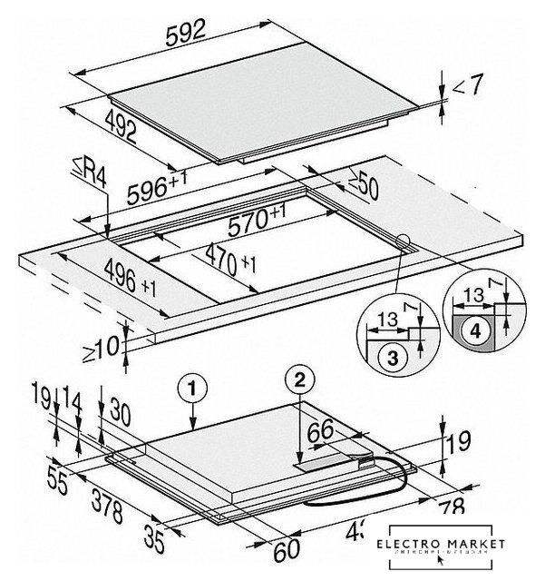 индукционная на 4 конфорки, cтеклокерамика, мощность: 7300 Вт, автоматика закипания, независимая установка, размеры (ШхГ): 62x52 см