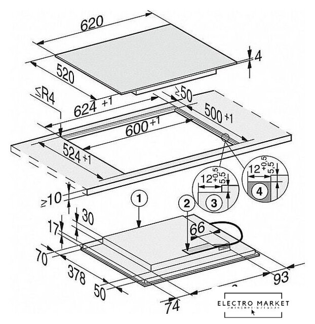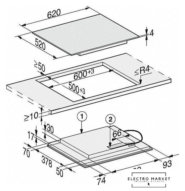 индукционная на 4 конфорки, cтеклокерамика, независимая установка, размеры (ШхГ): 65x51.5 см