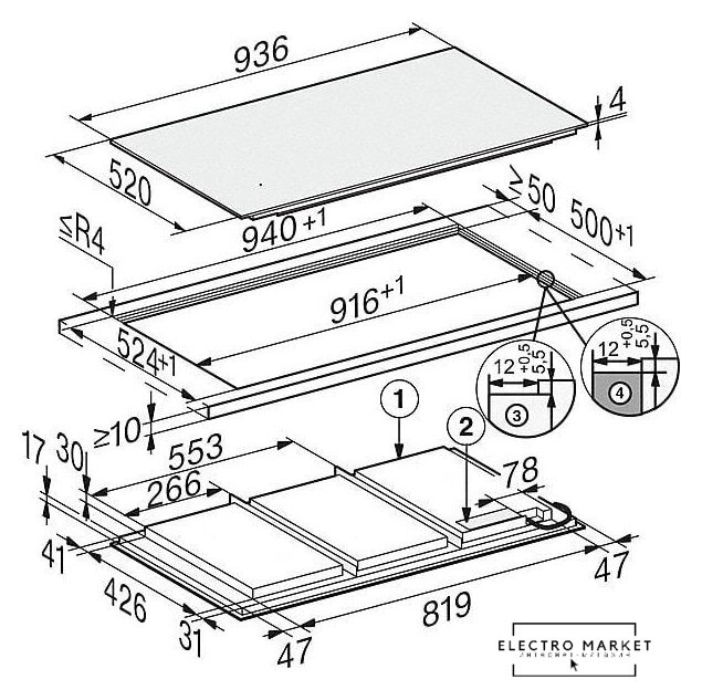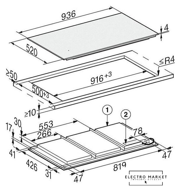 индукционная на 4 конфорки, cтеклокерамика, мощность: 7500 Вт, автоматика закипания, независимая установка, размеры (ШхГ): 80.6x52.6 см