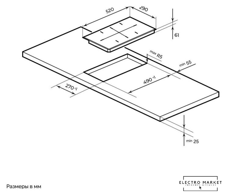 | Овальные/прямоугольные конфорки | 1 |