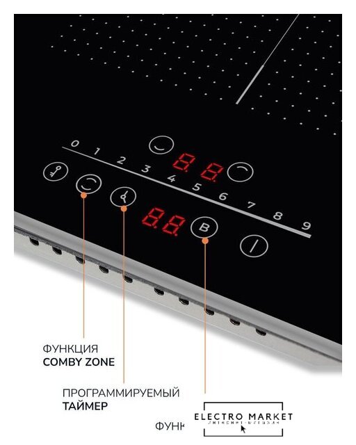 индукционная на 3 конфорки, cтеклокерамика, мощность: 6200 Вт, независимая установка, размеры (ШхГ): 45x51 см